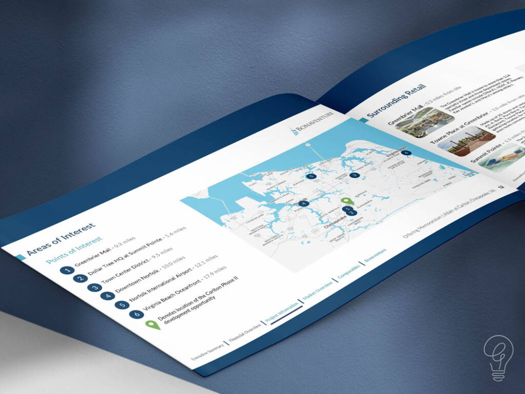 The result was a structured, navigable collateral document that translated complex financial and market data into a clear, professional investment narrative.